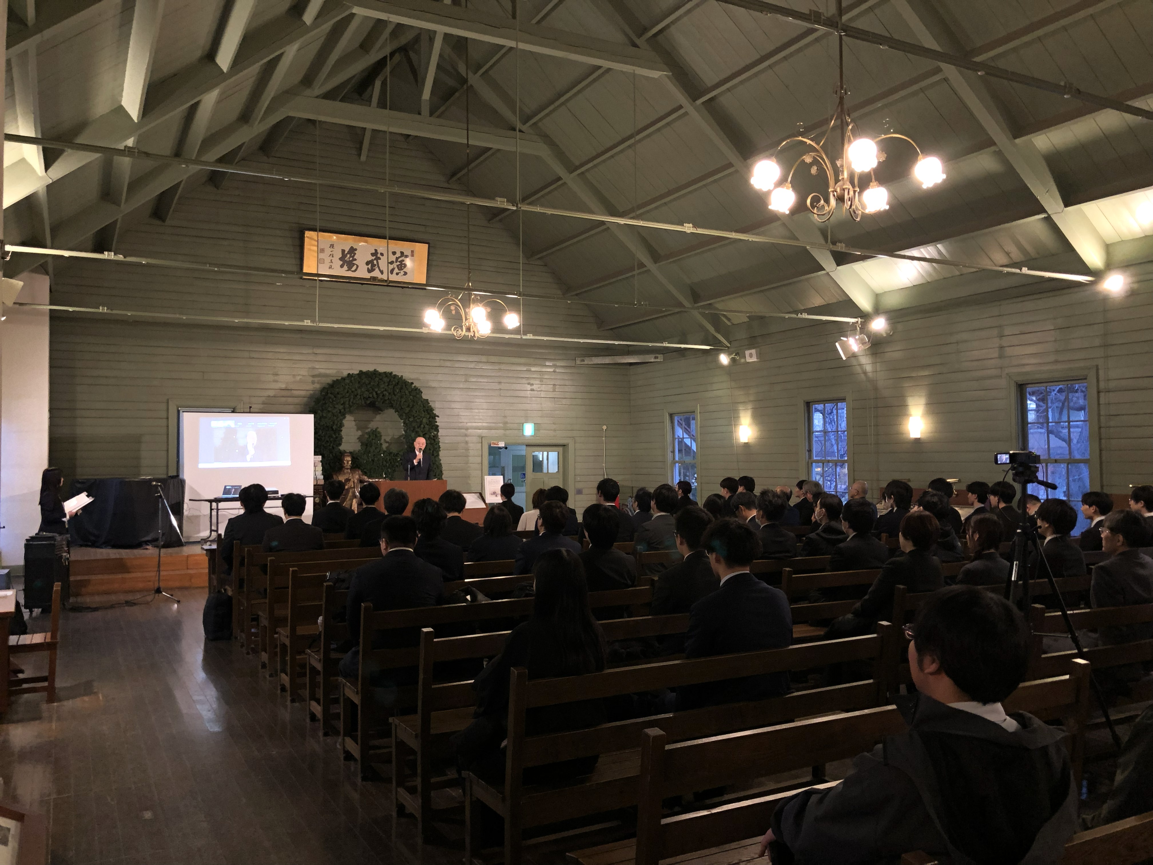 昨年度に引き続き、歴史的建造物である「札幌市時計台」の鐘を合図に、厳かな雰囲気の入社式が開式されました。